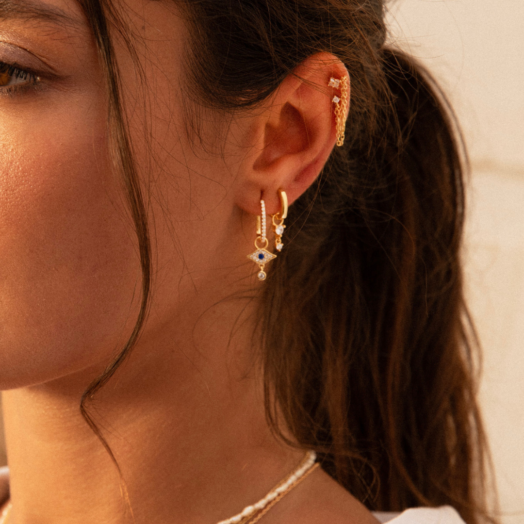 Introducing the "Luminar Hoop" - a dazzling rectangular zircon earring that radiates brilliance from every angle. Customize your style effortlessly by adding interchangeable charms to express your unique personality. Shine bright and embrace the brilliance of self-expression with the Luminar Hoop.
